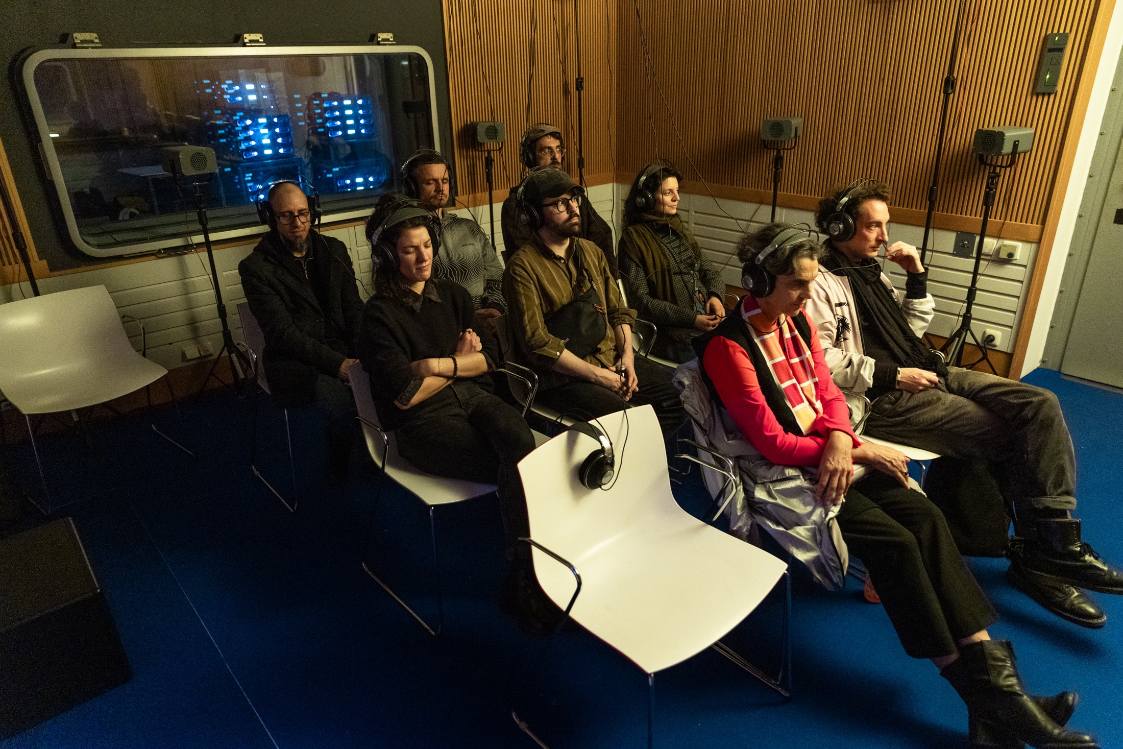 By composing across these frames, it becomes possible to place localized sounds on the headphones while projecting reverberation through the speakers, to invert spatial causality, or to blur conventional distance cues. Each listener experiences the resulting sound field slightly differently, depending on position, movement, and perception.